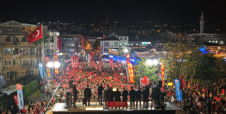 “Ekrem Başkan sizi seviyor anlaşılan. Seviyor mu? Siz onu seviyor musunuz? Peki, Tayyip Erdoğan sizi seviyor mu? Niye? Bunu ilk sorduğumda ben de şaşırdım. Dedim ki ‘Tayyip Erdoğan sizi seviyor mu?’ Ben sevgiden bahsedeceğim. ‘Hayır’ dediler. ‘Niye?’ dedim. Bağırdı oradan biri, şimdi söylediğiniz gibi. ‘Fakiriz biz’ dedi, ‘O fakir sevmez, zengin sever.’ O gün, bugün Türkiye’nin dört bir yanında soruyorum. Aynı soruya aynı kararlı cevap geliyor. Sevmiyor hakikaten. Resmi rakamlarla yoksulluk sınırı 91 bin lira. Yani bir haneye 91 bin lira girmiyorsa, o hane yoksul. Şu meydanda hanesinin 91 bin liranın altında geliri olanlar bir elini kaldırsın göreyim. Bu yüzden bu normal bir şey değil. Biz vatandaşla miting yapıyoruz, meydanın yüzde 90’ı zaten resmi rakama göre de ülkenin yüzde 86’sı bu rakamın altında gelir alıyor. Öyle olunca da Erdoğan, en yüksek vergiyi de faizi de yoksuldan topluyor. Bakın bitmiş, tükenmiş, son çaresi kredi kartını kredi kartıyla kapatmak olmuş ya da ‘nakit avans’ dedikleri yani eksi bakiyeci olmuş insanlardan yüzde 95 faiz alıyor. Resmi faiz oranı yüzde 40. Bunun biraz üzerinde işletmelere, fabrikalara kredi dağıtıyorlar. Ama İbrahim Amca’ya emekli maaşı yetmemiş, kredi kartından çekmiş ve minimum tutarı ödeyebilmiş, üstüne faiz: Yüzde 95. Ya da gitmiş bankadan nakit avans çekmiş, eksi bakiyeye düşmüş: Yıllık yüzde 95. Bakın bir zengin adam düşünün. Parasını bu karşıdaki şubeye koyuyor. Gidiyor o şubenin müdüre hanımına diyor ki ‘Şu kadar param var, ne kadar faiz verirsiniz?’ Hesaplıyorlar, kazandığı faizden yüzde 17,5 stopaj ödüyor. Ama İbrahim Amca takibe düşmüş kredi borcundan, kredi kartı borcundan yüzde 30 vergi ödüyor. Yüzde 40 olacak faizi de o yüzde 30 verginin ve diğerlerinin binmesiyle yüzde 95 olarak ödüyor. Yani bu AK Parti, bu Recep Tayyip Erdoğan nasıl birisi biliyor musunuz? Zengini seviyor, fakiri sevmiyor. Hatta düşene hiç acımıyor. Yere düşene bir tekmeyi de vuran düzen, Tayyip Erdoğan’ın saray düzenidir. İşte AK Parti iktidarı, hep yere düşene tekme vuran iktidardır. Cumhuriyet Halk Partisi’nin anlayışı tökezleyenin koluna girer, yere düşeni kaldırır. Yarası olanın yarasını sarar. Asla yere düşene vurmaz. Çünkü Cumhuriyet Halk Partisi, düşenin, ezilenin, kırılanın ve devletten bir şey bekleyenin partisidir. Çünkü Cumhuriyet, bilhassa kimsesizlerin kimsesidir.”